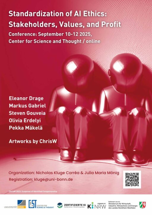 Vom 10. bis 12. September 2025 findet im Center For Science And Thought (CST) der Universität Bonn und online die englischsprachige Konferenz »Standardization of AI Ethics: Stakeholders, Values, and Profit« zur Standardisierung von KI-Ethik statt und schaut auf Interessengruppen, Werte und Gewinne.